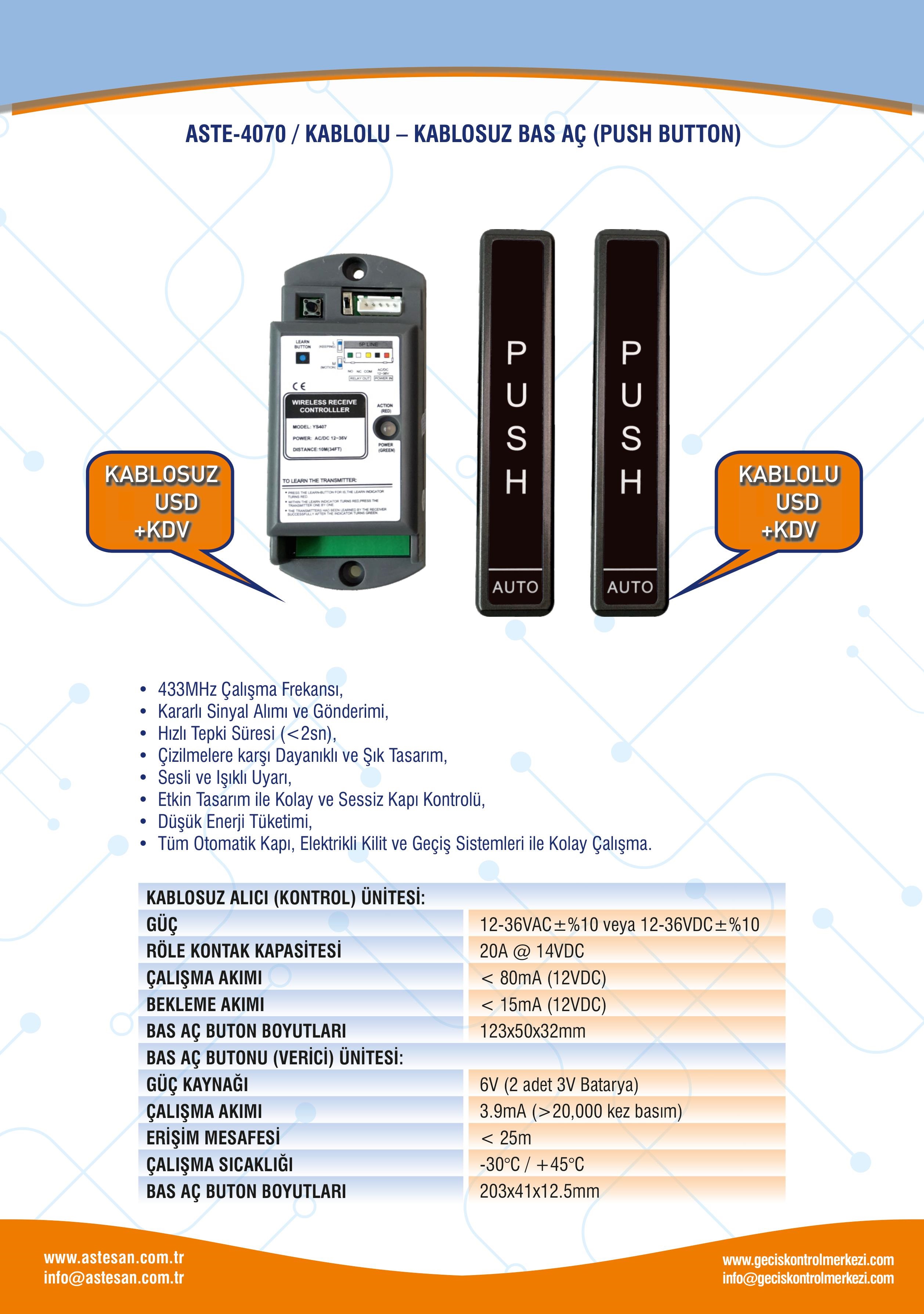 Push Buton / Çıkış Butonu / Kablosuz Buton